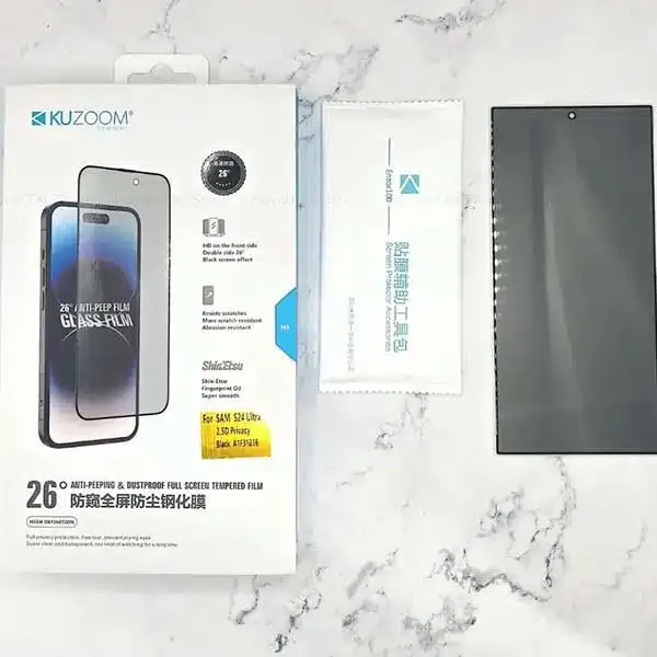 Kuzoom 26° Privacy Anti-peeping Dustproof Full Screen Tempered Glass Film for Galaxy S24 Ultra