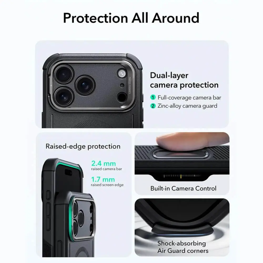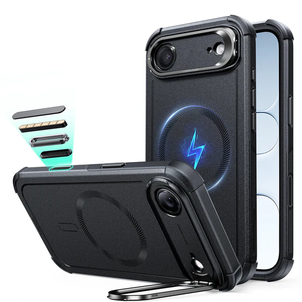 ESR Cyber Tough Magnetic Case for iPhone 17 Series – Camera Control, Built-in Stash Stand, MagSafe Compatible